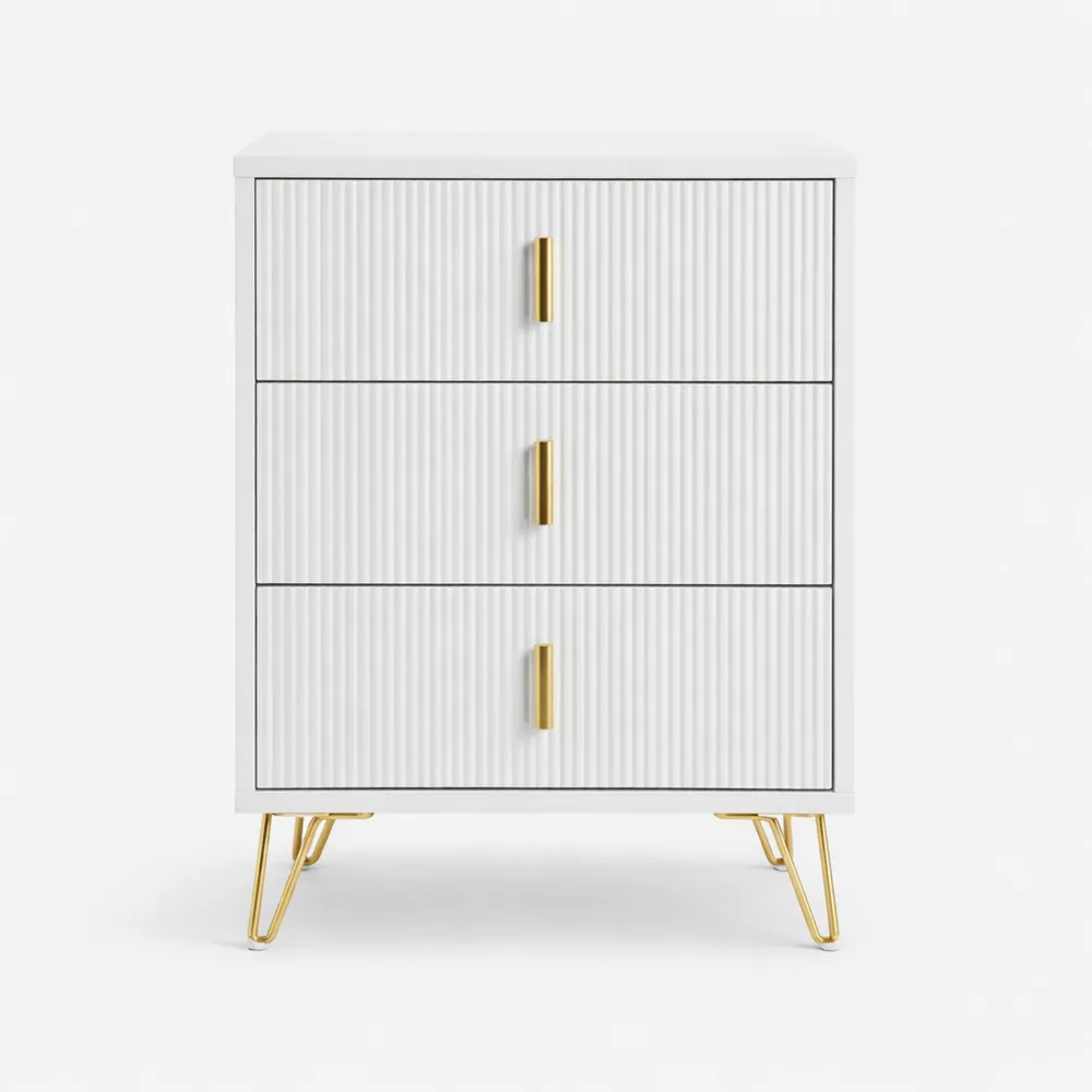 Comodino Camera da Letto con 3 Cassetti, Moderna Cassettiera Bianco